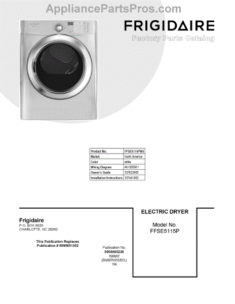Parts for Frigidaire FFSE5115PW3: 01 - Cover Sheet Parts