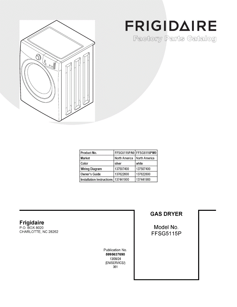 Parts for Frigidaire FFSG5115PA0: 01 - Cover Sheet Parts