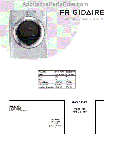 Parts for Frigidaire FFSG5115PA1: 01 - Cover Sheet Parts