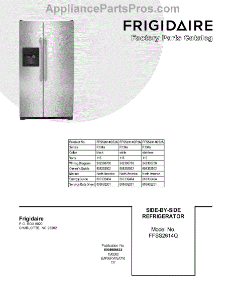 Parts for Frigidaire FFSS2614QE2A: 01 - Cover Sheet Parts