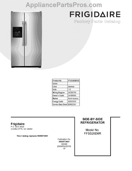 Parts for Frigidaire FFSS26D8RS0: 01 - Cover Sheet Parts