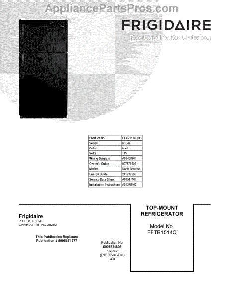 Parts for Frigidaire FFTR1514QB3: 01 - Cover Sheet Parts