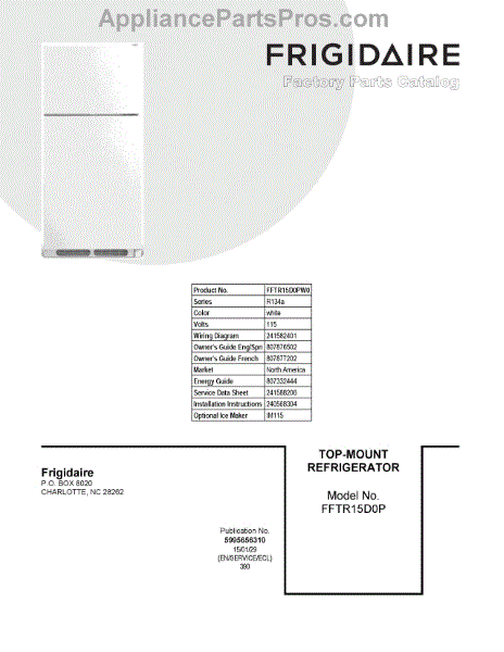 Parts for Frigidaire FFTR15D0PW0: 01 - Cover Sheet Parts