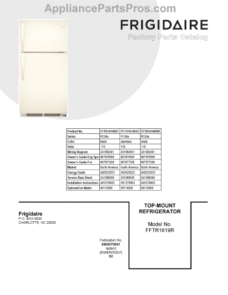 Parts for Frigidaire FFTR1619RS1: 01 - Cover Sheet Parts