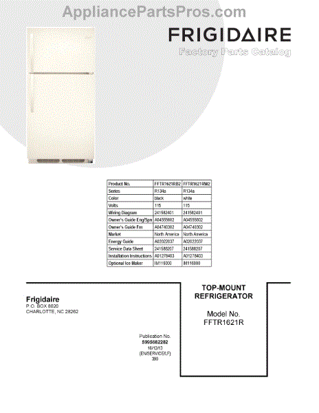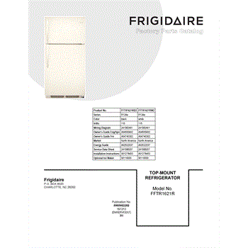 Parts for Frigidaire FFTR1621RW2: 01 - Cover Sheet Parts