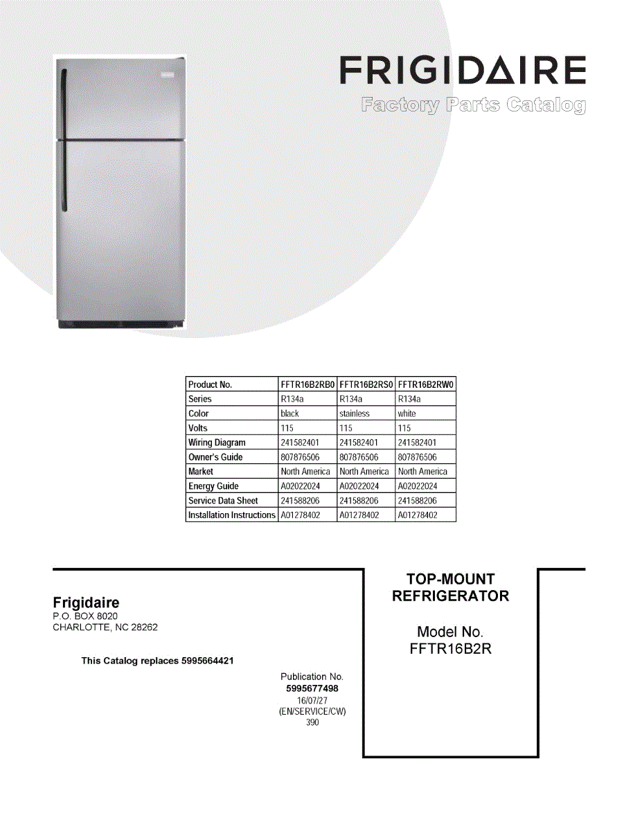 Parts for Frigidaire FFTR16B2RB0: 01 - Cover Sheet Parts