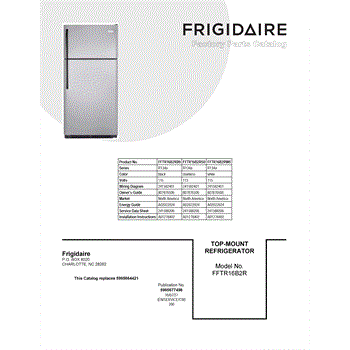 Parts for Frigidaire FFTR16B2RW0: 01 - Cover Sheet Parts