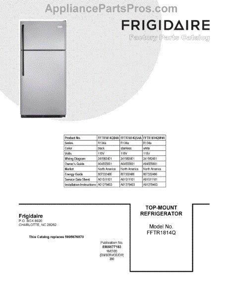Parts for Frigidaire FFTR1814QB4A: 01 - Cover Sheet Parts