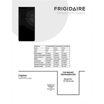 Parts for Frigidaire FFTR1814QB7B: 01 - Cover Sheet Parts