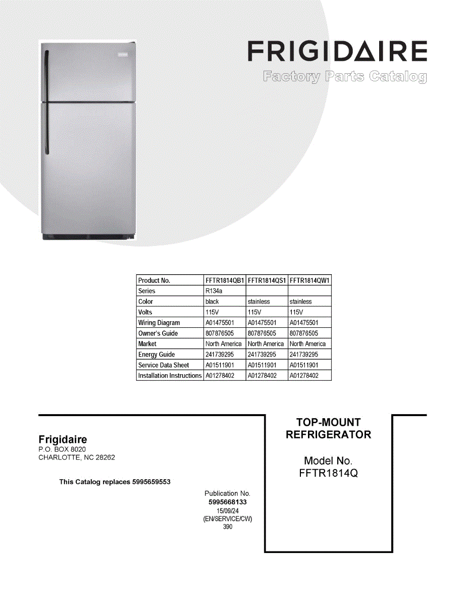 Parts for Frigidaire FFTR1814QW1: 01 - Cover Sheet Parts
