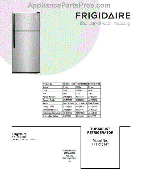 Parts for Frigidaire FFTR1814TW0: 01 - Cover Sheet Parts