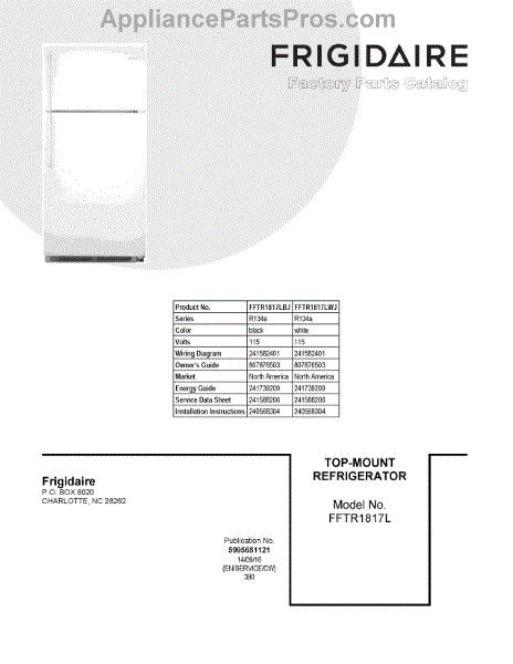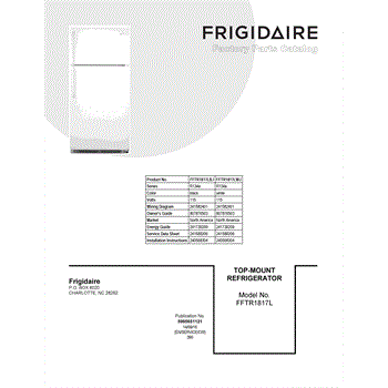 Parts for Frigidaire FFTR1817LWJ: 01 - Cover Sheet Parts
