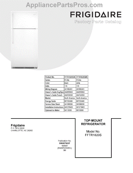 Parts for Frigidaire FFTR1820SB0: 01 - Cover Sheet Parts