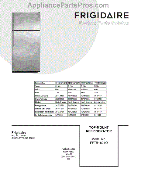 Parts for Frigidaire FFTR1821QB0: 01 - Cover Sheet Parts