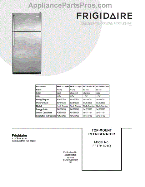 Parts for Frigidaire FFTR1821QW3: 01 - Cover Sheet Parts