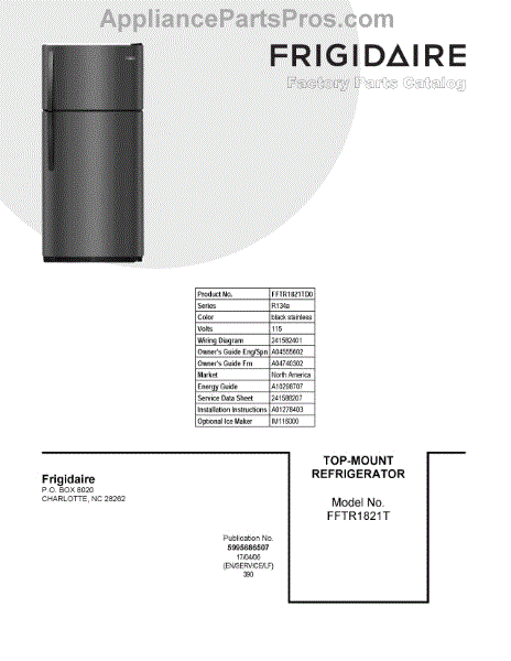 Parts for Frigidaire FFTR1821TD0: 01 - Cover Sheet Parts