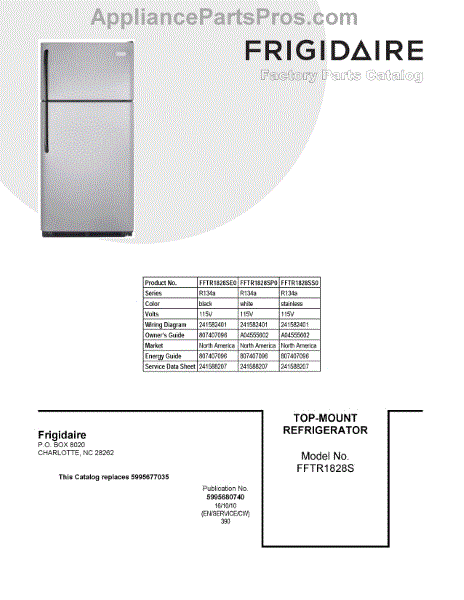 Parts for Frigidaire FFTR1828SE0: 01 - Cover Sheet Parts