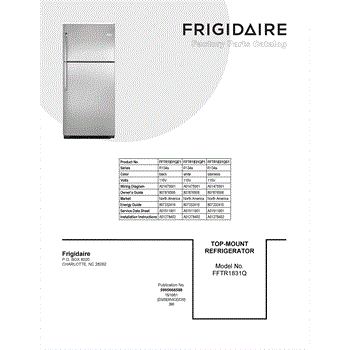 Parts for Frigidaire FFTR1831QE1: 01 - Cover Sheet Parts