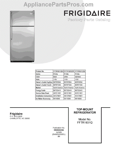 Parts for Frigidaire FFTR1831QP0: 01 - Cover Sheet Parts