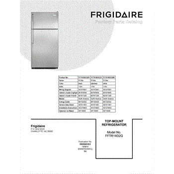 Parts for Frigidaire FFTR18D2QB1: 01 - Cover Sheet Parts