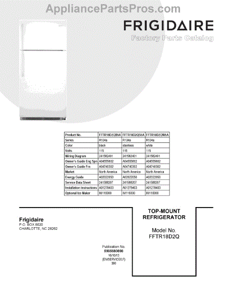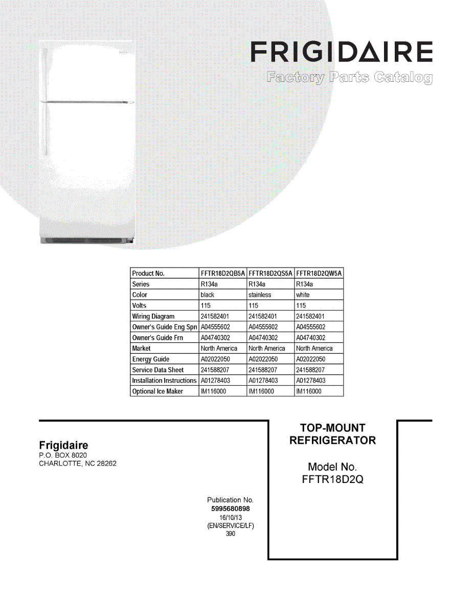 Parts for Frigidaire FFTR18D2QB5A: 01 - Cover Sheet Parts
