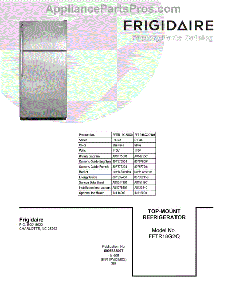 Parts for Frigidaire FFTR18G2QS0: 01 - Cover Sheet Parts