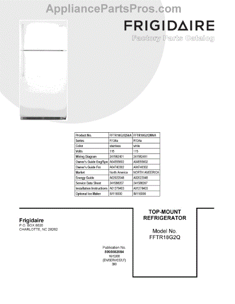 Parts for Frigidaire FFTR18G2QW6A: 01 - Cover Sheet Parts