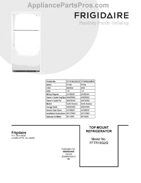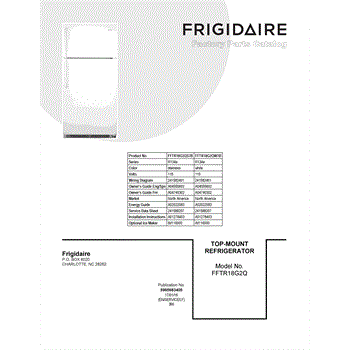 Parts for Frigidaire FFTR18G2QW7B: 01 - Cover Sheet Parts