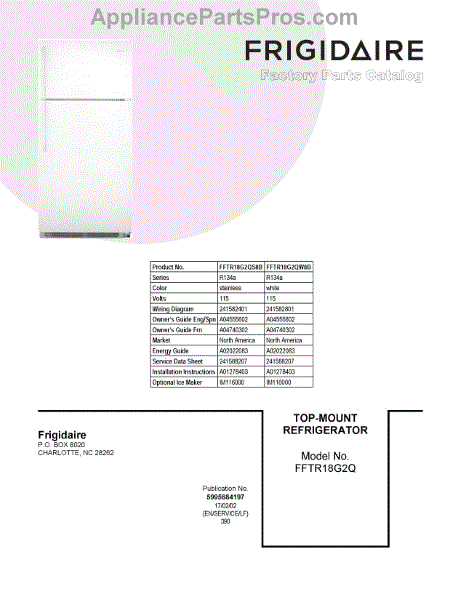 Parts for Frigidaire FFTR18G2QW8B: 01 - Cover Sheet Parts