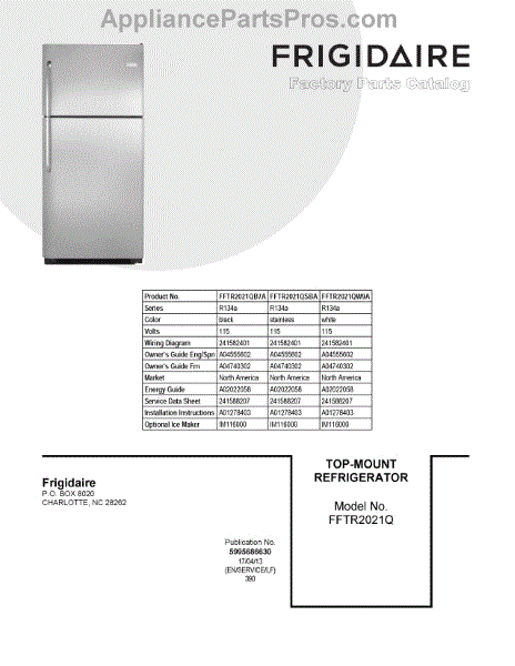 Parts for Frigidaire FFTR2021QB7A: 01 - Cover Sheet Parts