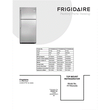 Parts for Frigidaire FFTR2028SP3A: 01 - Cover Sheet Parts