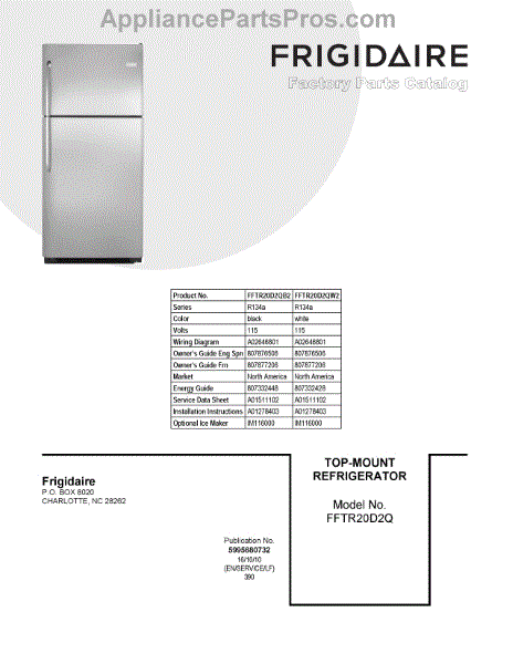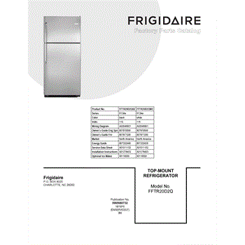 Parts for Frigidaire FFTR20D2QW2: 01 - Cover Sheet Parts