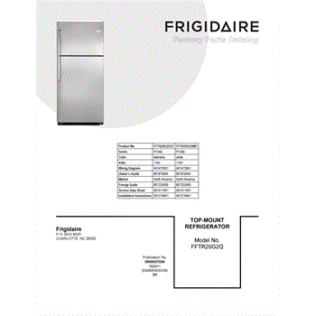 Parts for Frigidaire FFTR20G2QS1: 01 - Cover Sheet Parts