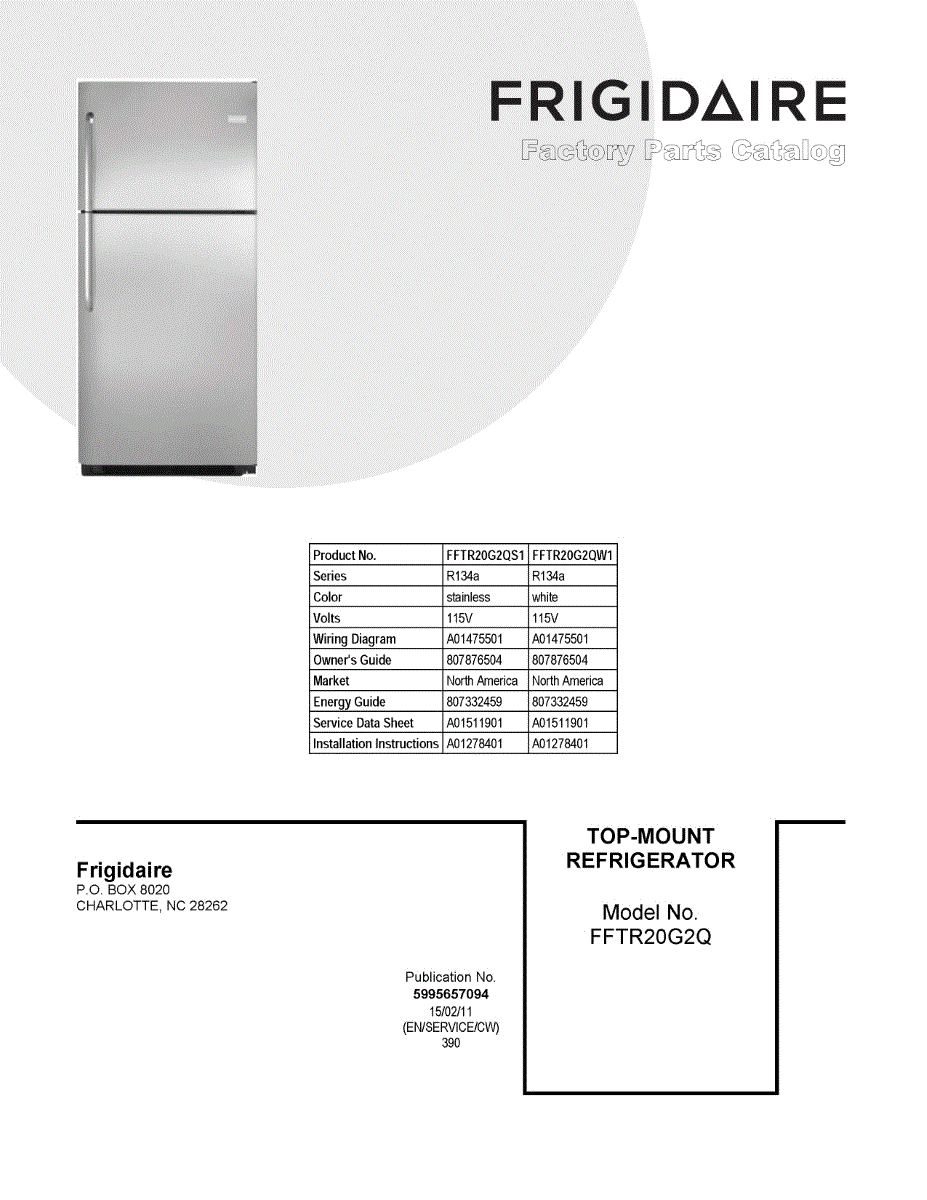 Parts for Frigidaire FFTR20G2QW1: 01 - Cover Sheet Parts