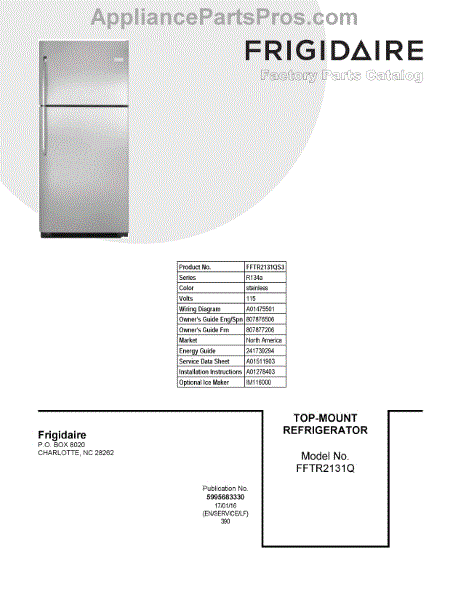 Parts for Frigidaire FFTR2131QS3: 01 - Cover Sheet Parts
