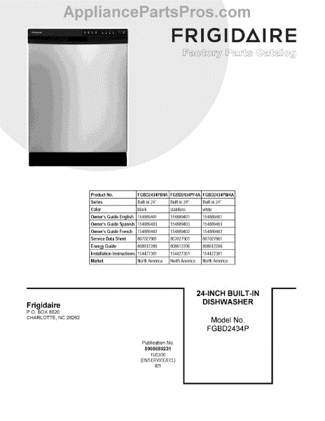 Parts for Frigidaire FGBD2434PF4A: 01 - Cover Sheet Parts