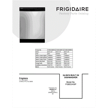 Parts for Frigidaire FGBD2438PB7A: 01 - Cover Sheet Parts