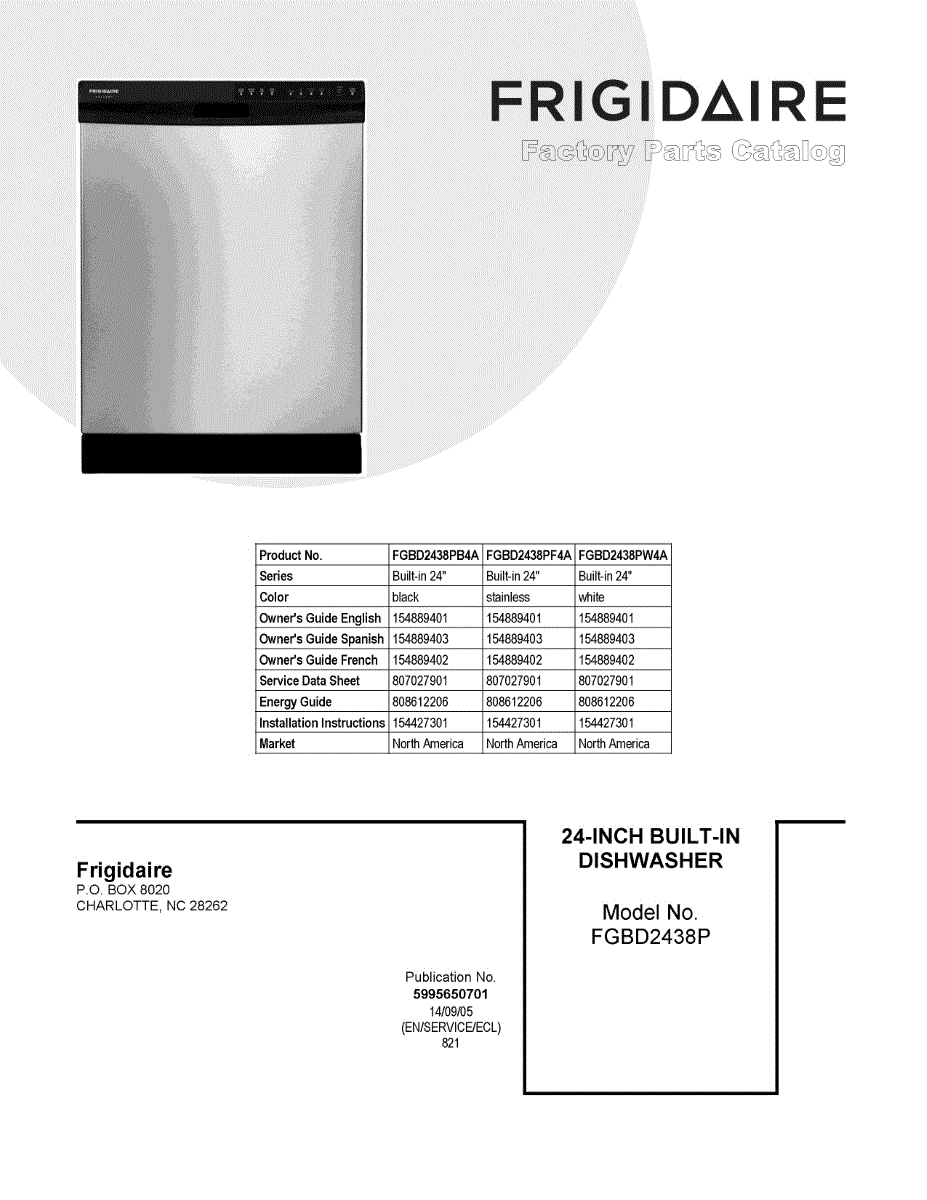 Parts for Frigidaire FGBD2438PW4A: 01 - Cover Sheet Parts