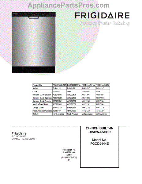 Parts for Frigidaire FGCD2444SF1A: 01 - Cover Sheet Parts