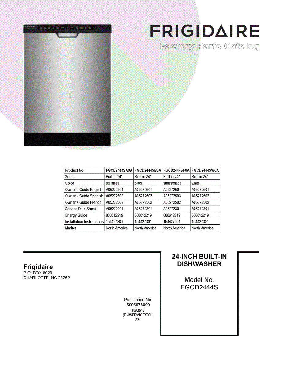 Parts for Frigidaire FGCD2444SW0A: 01 - Cover Sheet Parts