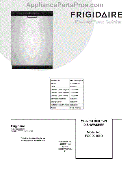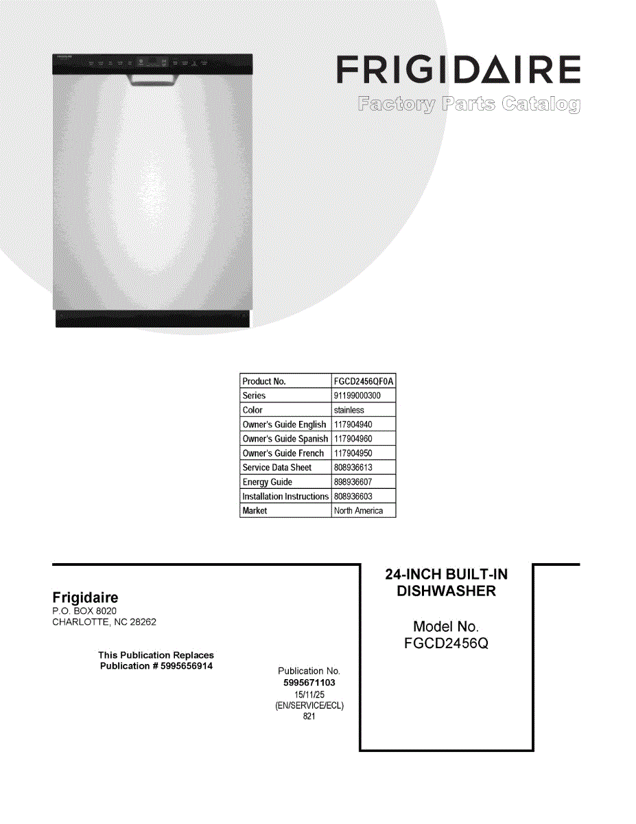 Parts for Frigidaire FGCD2456QF0A: 01 - Cover Sheet Parts