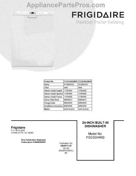 Parts for Frigidaire FGCD2456QW1B: 01 - Cover Sheet Parts