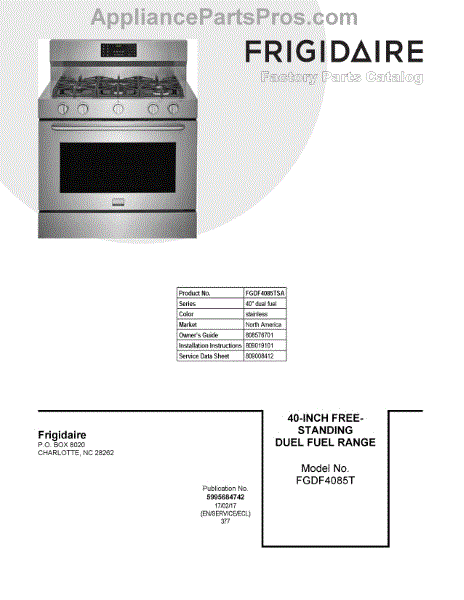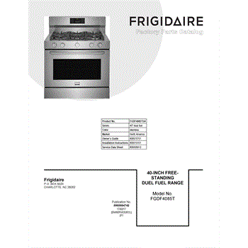 Parts for Frigidaire FGDF4085TSA: 01 - Cover Sheet Parts
