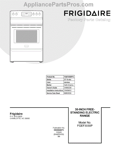 Parts for Frigidaire FGEF3030PFC: 01 - Cover Sheet Parts