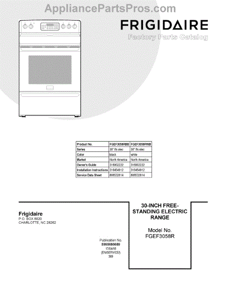 Parts for Frigidaire FGEF3058RBB: 01 - Cover Sheet Parts