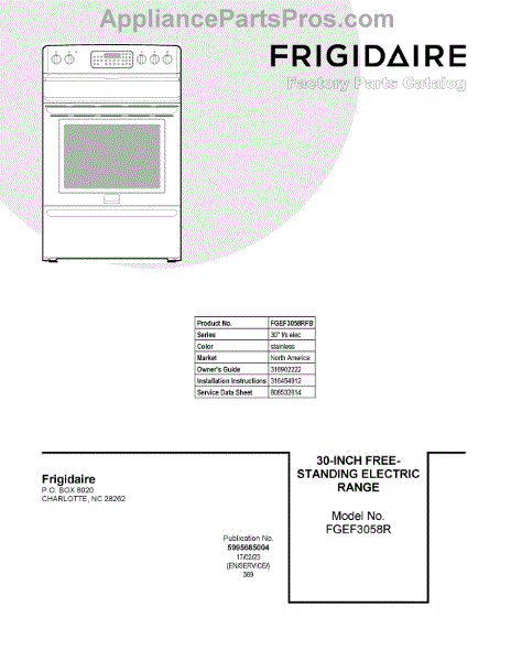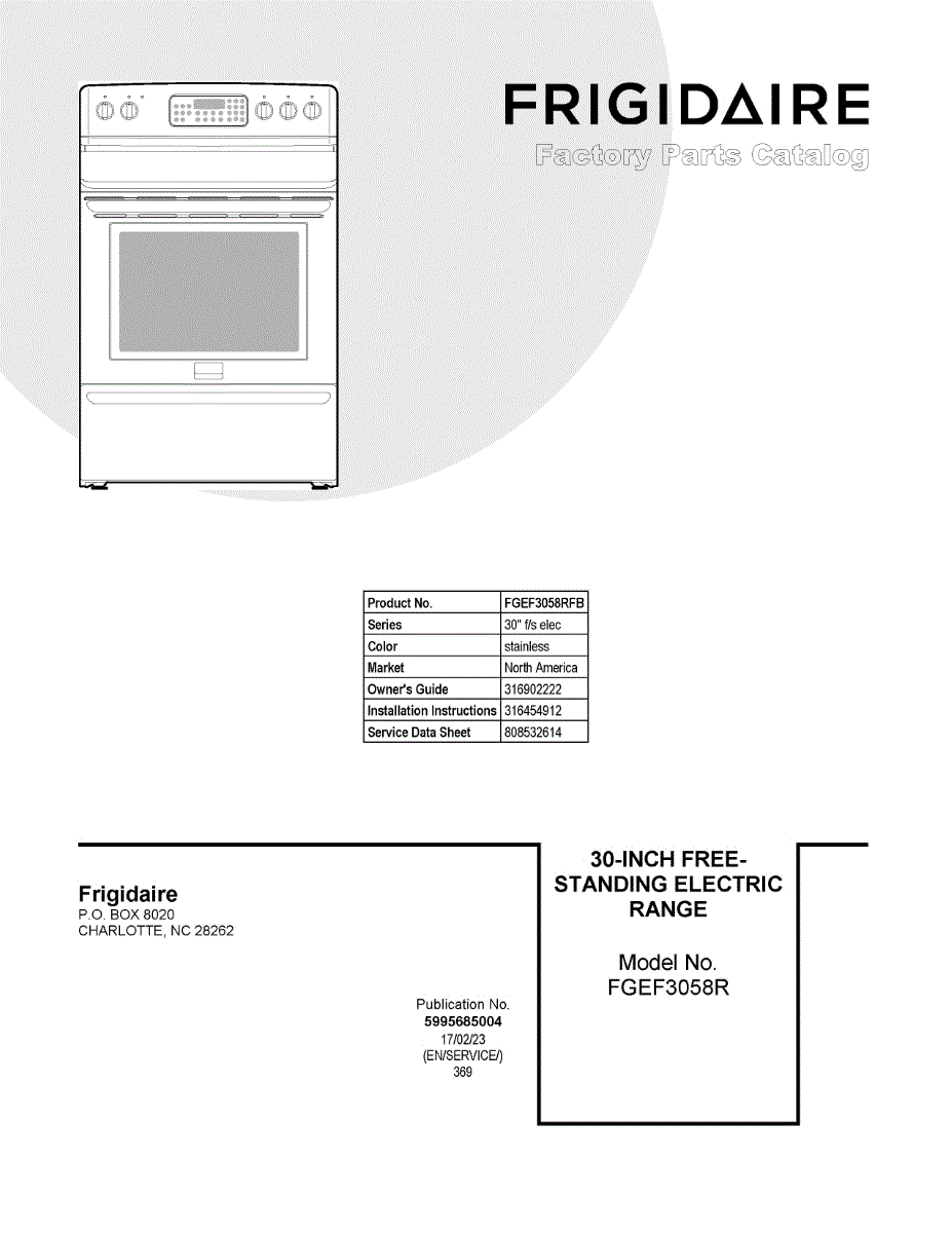 Parts for Frigidaire FGEF3058RFB: 01 - Cover Sheet Parts