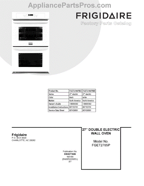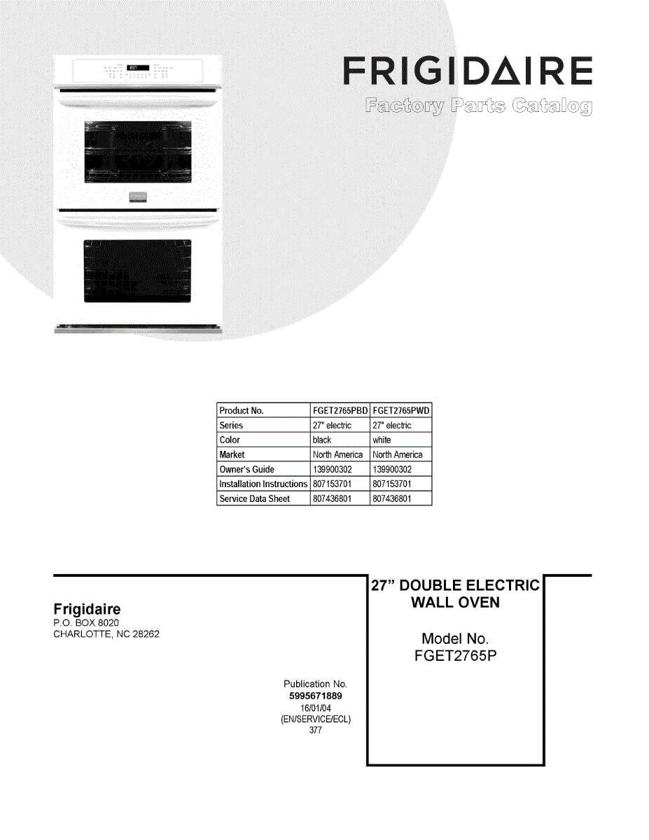 Parts for Frigidaire FGET2765PBD: 01 - Cover Sheet Parts