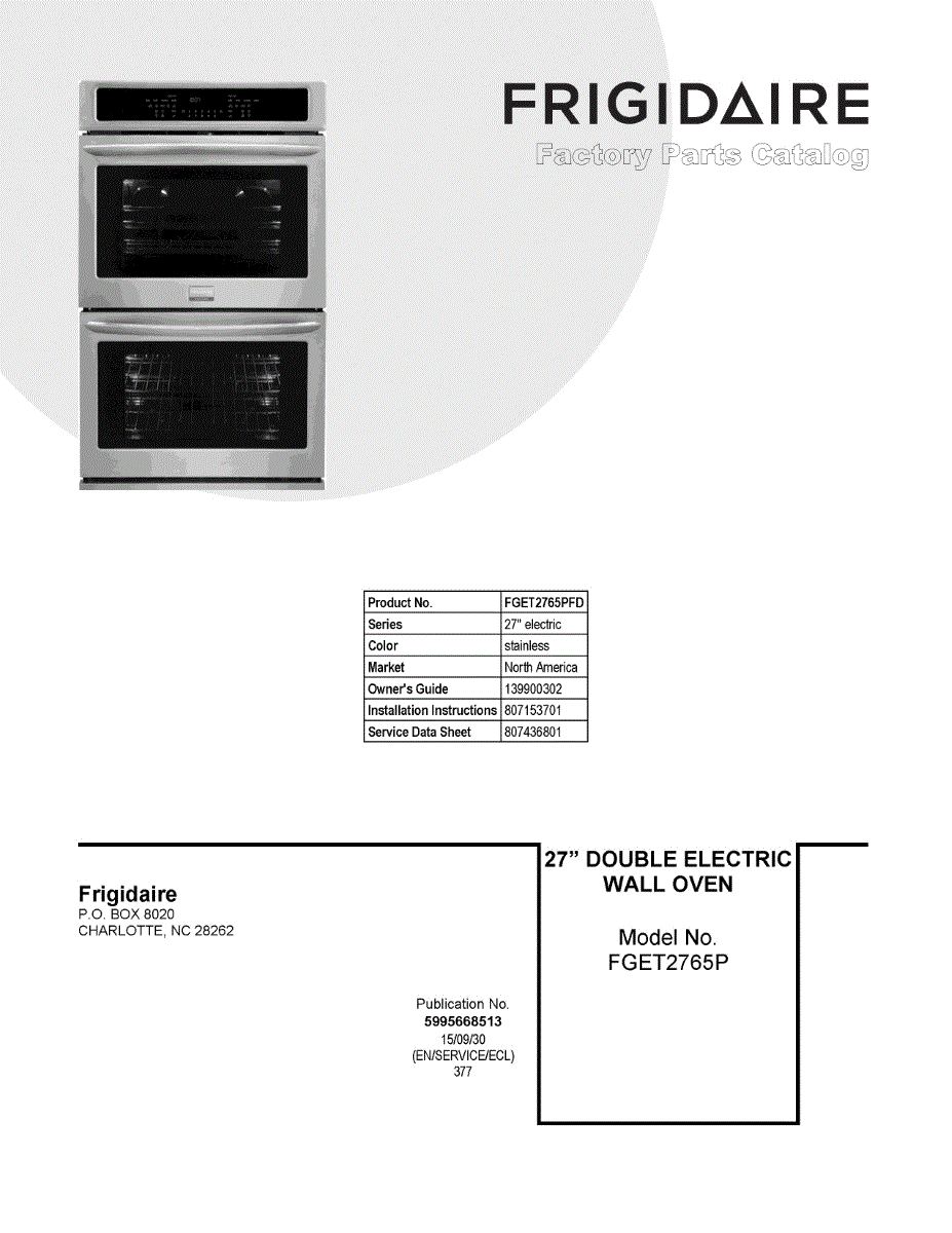 Parts for Frigidaire FGET2765PFD: 01 - Cover Sheet Parts