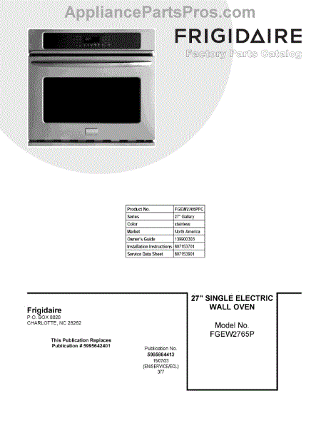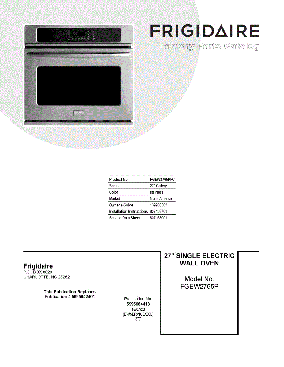 Parts for Frigidaire FGEW2765PFC: 01 - Cover Sheet Parts