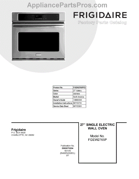 Parts for Frigidaire FGEW2765PFD: 01 - Cover Sheet Parts